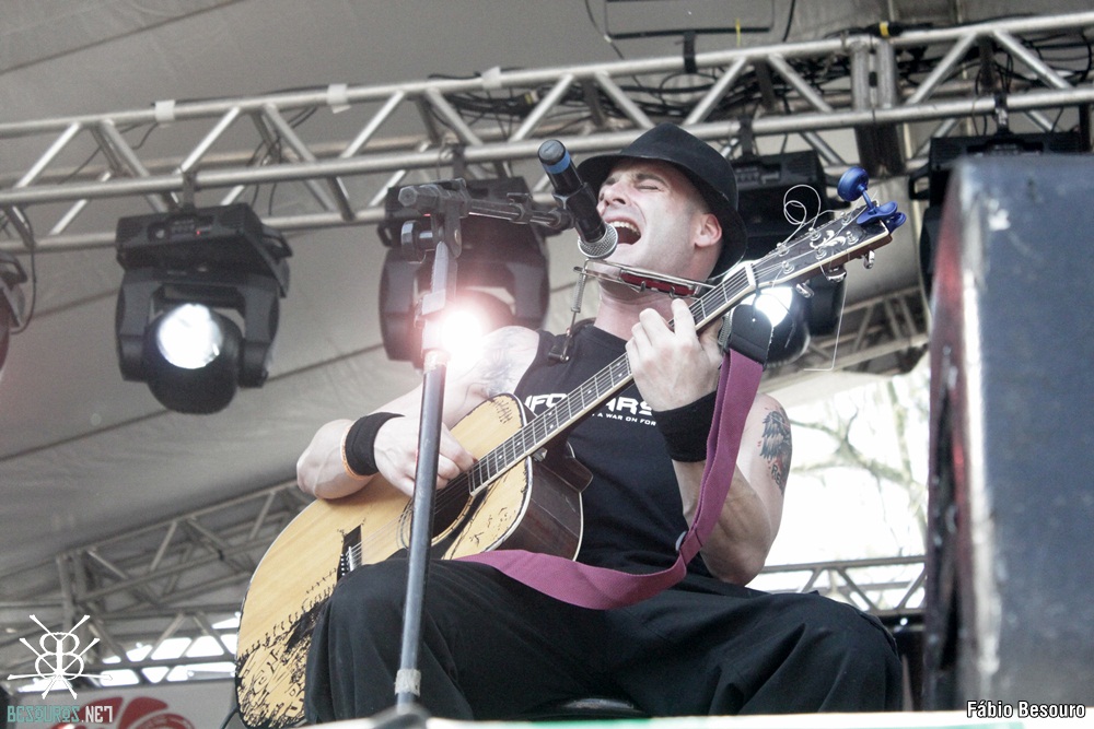 As 15h30 sobe no palco Michale Graves (ex-Misfits)! A maioria do público vestia camisetas da antiga banda de Graves. A expectativa era alta para o show. Mas embora não fosse anunciado, Graves subiu no palco sozinho, com um violão e uma gaita para um show acústico. Eu sabia que ele fazia shows assim, mas tinha uma esperança de vê-lo com uma banda!